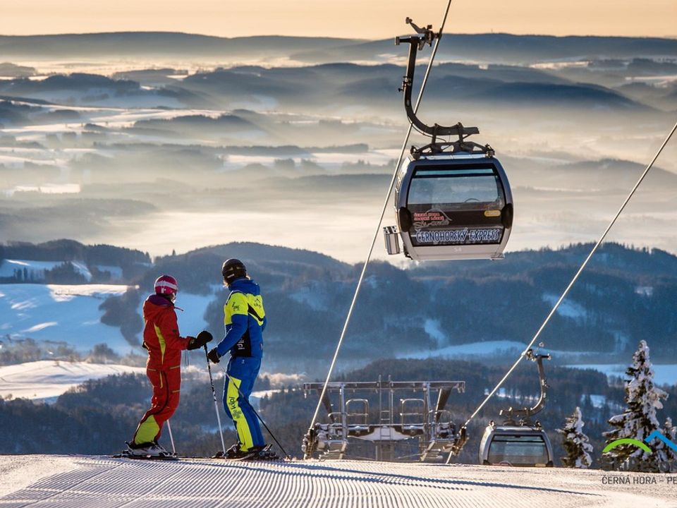 SkiResort ČERNÁ HORA – PEC jest idealnym miejscem na aktywny urlop rodzinny w zimie w lecie. Przejedźcie się jedyną kabinową ośmioosobową kolejką linową w Czechach lub 2 krzesełkowe kolejki linowe. W Peci pod Sněžkou możecie kochać się widokiem z najwyżej położonej wieży widokowej w Karkonoszach. Černá hora – idealny punkt wyjścia na wycieczki po grzebieniach gór, wycieczki rowerowe, zjazdy na hulajnogach górskich. Polecamy parky dla dzieci Kabinka na Černé hoře i Pecka w Velké Úpě. Przyjedźcie do Karkonoszy wschodnich także w zimie. SkiResort ČERNÁ HORA – PEC jest to największy resort narciarski w Czechach, który oferuje ponad 50 km nartostrad na 1 skipas.