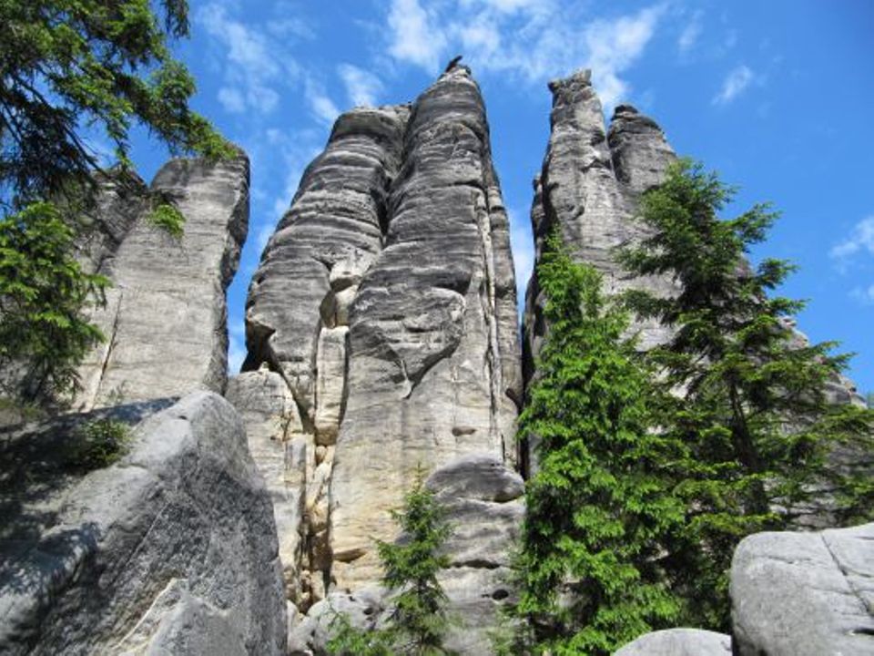 Skały Teplickie słusznie należą do najczęściej odwiedzanych terenów przyrodniczych w Republice Czeskiej. Stanowią najrozleglejszą część Narodowego Rezerwatu Przyrody - Skał Adrszpasko-Teplickich. Jeśli dacie się Państwo namówić do odwiedzenia Skał Teplicikich, to czeka Was spacer przez dziki, skalny labirynt, którego monumentalne piękno dosłownie zapiera dech w piersiach. Pójdziecie pod masywnymi Świątynnymi Ścianami, przejdziecie wąskimi wąwozami Anenskiej Doliny, odwiedzicie malownicze zakątki i zobaczycie wspaniałe widoki. Niezwykłe kształty skalnych form będą pobudzać Państwa fantazję, tak jak wszystkich tych, którzy odwiedzali Skały Teplickie już kilkaset lat wcześniej. Skały Teplickie to także rozsławione miejsce wspinaczek skalnych. W mieście Teplice nad Metują corocznie odbywają się Międzynarodowe Festiwale Filmów Wspinaczkowych.
