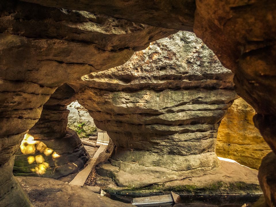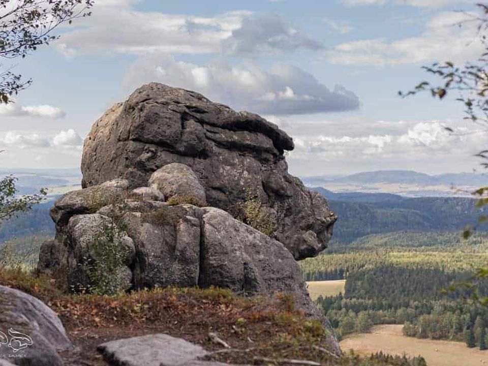 Przepiękne, unikalne Skalne Miasto. Formy skalne zbudowane z piaskowca płytowego malowniczo i wspaniale wyrzeźbione przez Naturę. 100 metrowe skalne ściany sprawiają często monumentalne wrażenie. Znajdziemy tutaj skalny wodospad, piękne szmaragdowe jezioro starej piaskarni otoczone różnobarwną roślinnością oraz górne jeziorko gdzie ciekawą atrakcją jest przepływ wieloosobowymi tratwami.